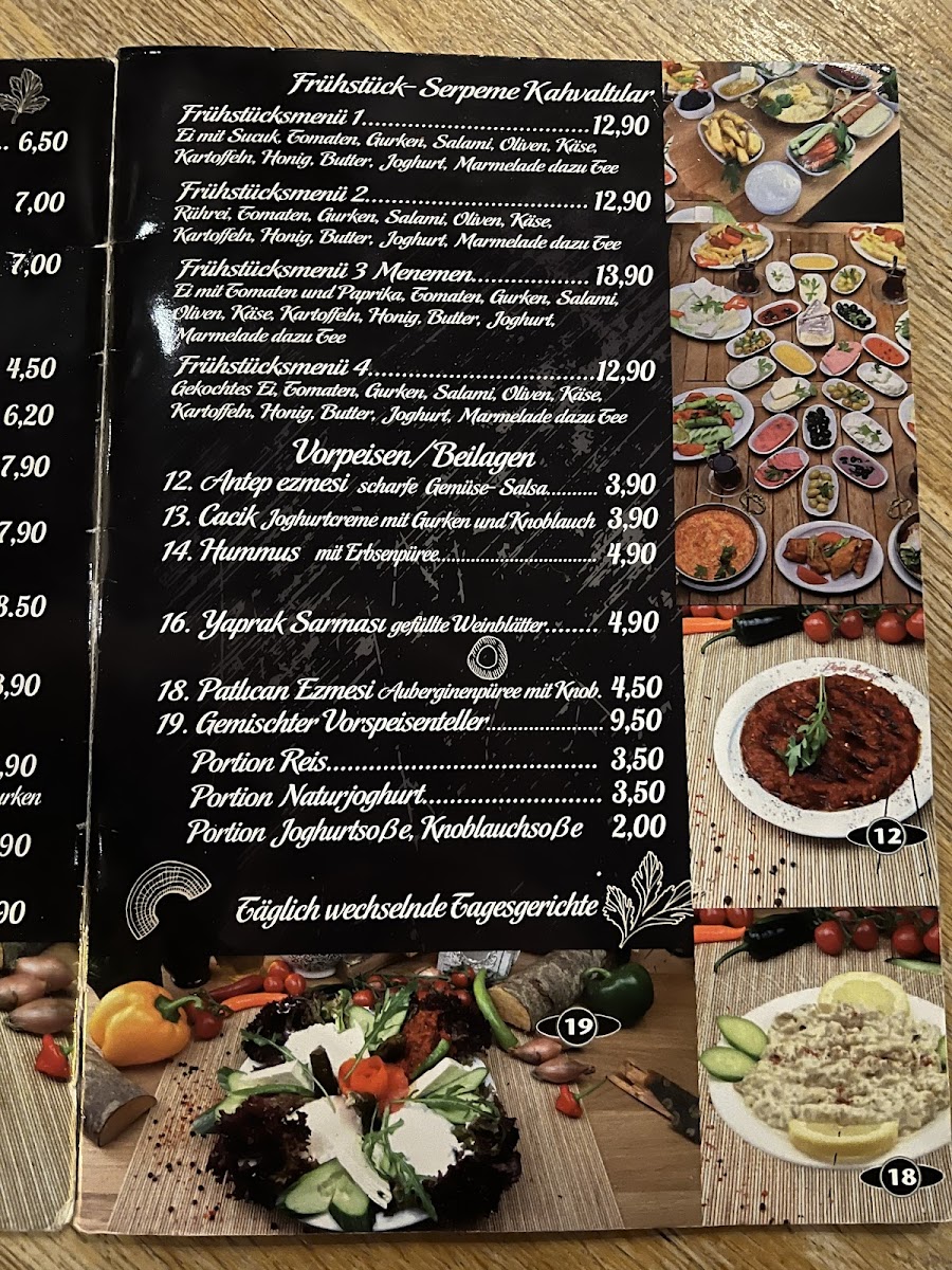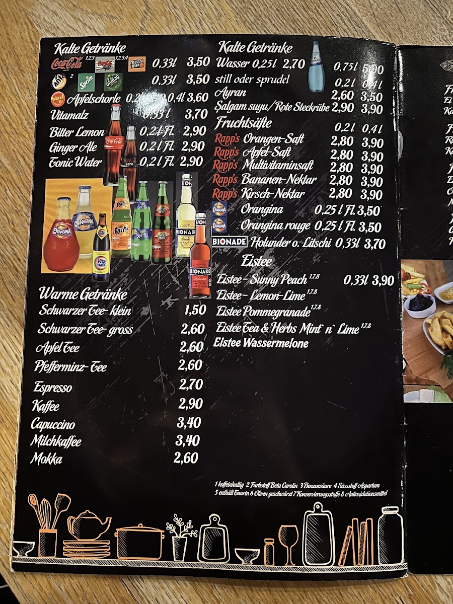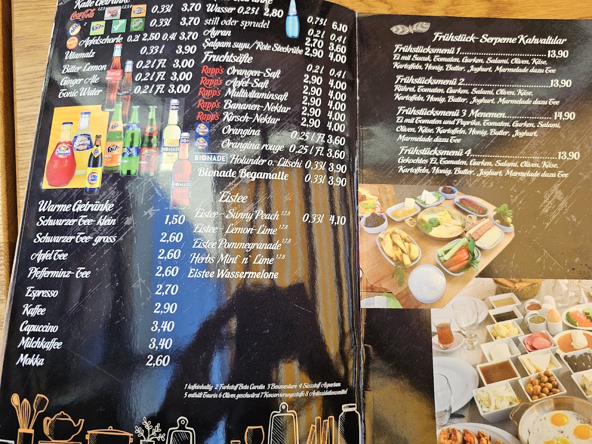 The drinks menu includes traditional Turkish refreshments that pair effortlessly with the food. A cold Ayran balances the spices of the main dishes, while a cup of Türkischer Tee invites a moment of calm and reflection, capturing the relaxed atmosphere of the restaurant.