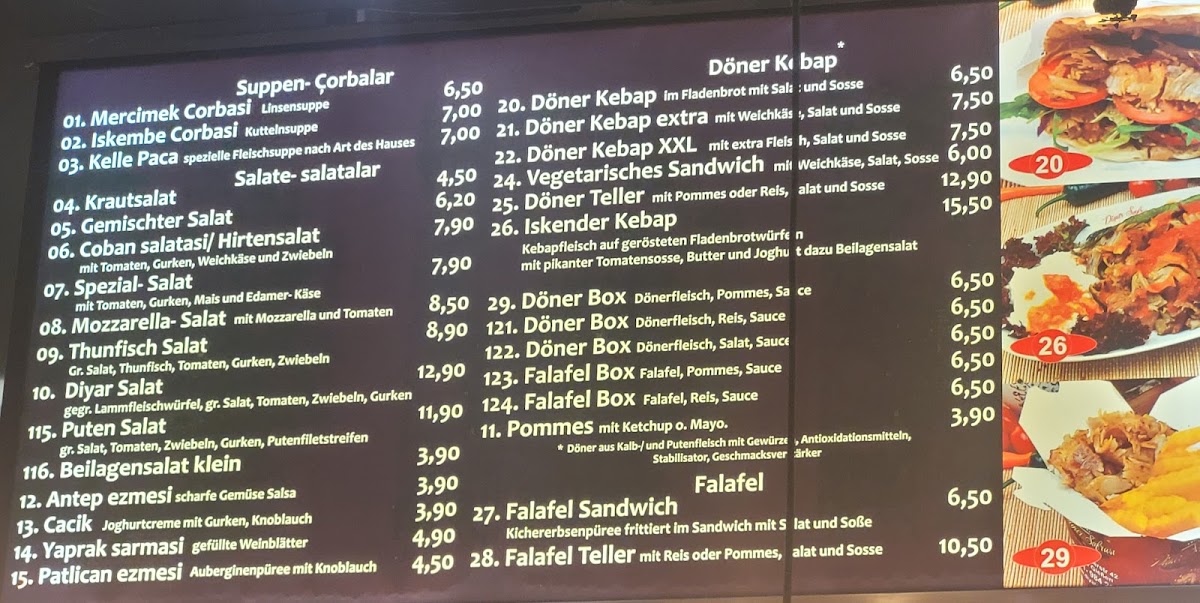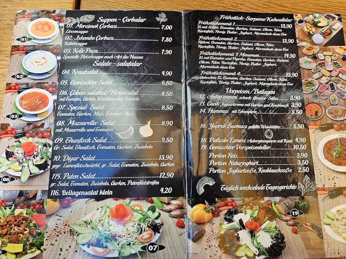 Guests can enjoy anything from grilled meat platters like the Mix Grillteller für 4 Personen to classic kebabs such as the Adam Kebap Hackfleischspieß mit Reis und Salat. Lighter options such as the fresh Beilagensalat or rich Mercimek Çorbası lentil soup complement the heartier plates well. Those with a sweet tooth often turn to desserts like Künefe or Kunafe mit Eis, which offer a satisfying finish to the meal.